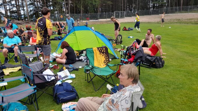 E1 Krátká trať Hůrky. Start i cíl byl od shromaždiště vzdálen skoro 2 km. Shromaždiště bylo v místě doběhu MS juniorů 2024, takže jsme si s chutí zafandili. Na trati pár strmých výběhů a seběhů. Nejlépe dopadl Sam na čtvrtém místě z jednačtyřiceti borců v H21A. Honza Beneš byl v H14A 5. Honzové v H80 se podělili o 2. a 3. místo.