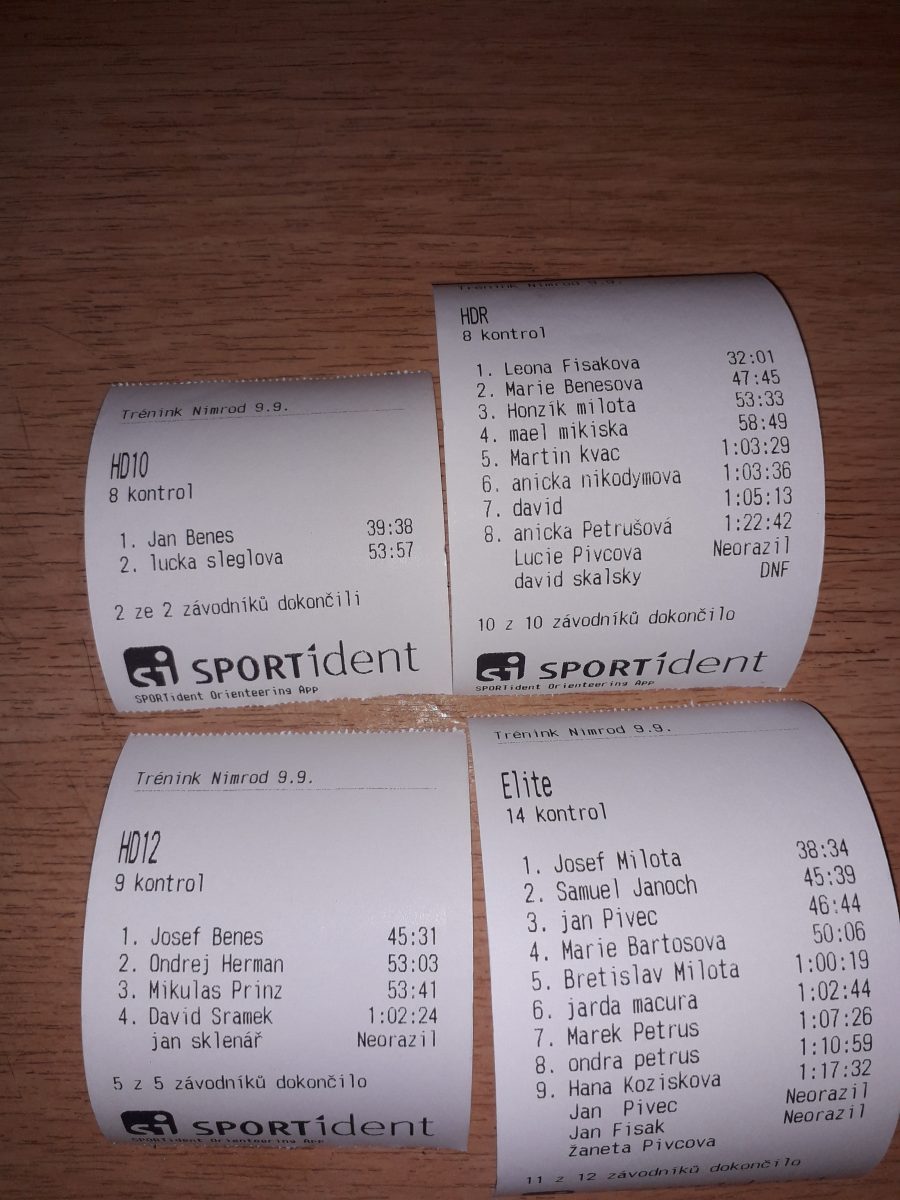 V lese byly připraveny kontroly jako při normálním závodě: na stojanu velký lampion a krabička. Takže se pípalo a každý si po tréninku mohl porovnat mezičasy se svými soupeři.