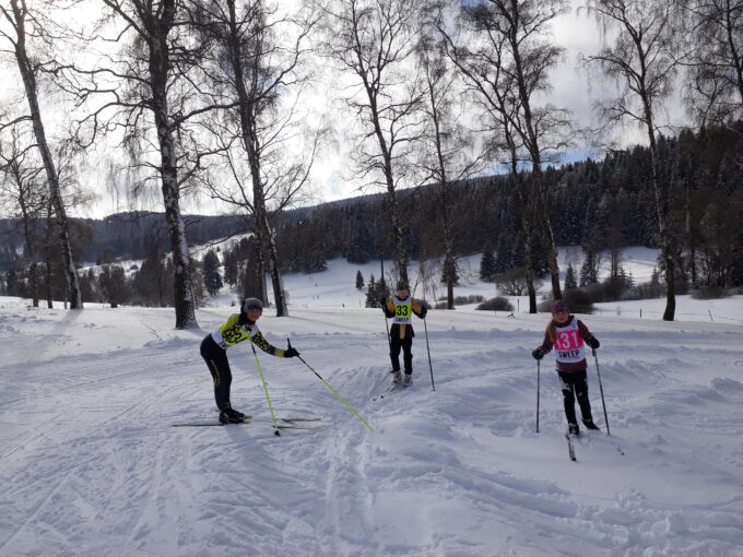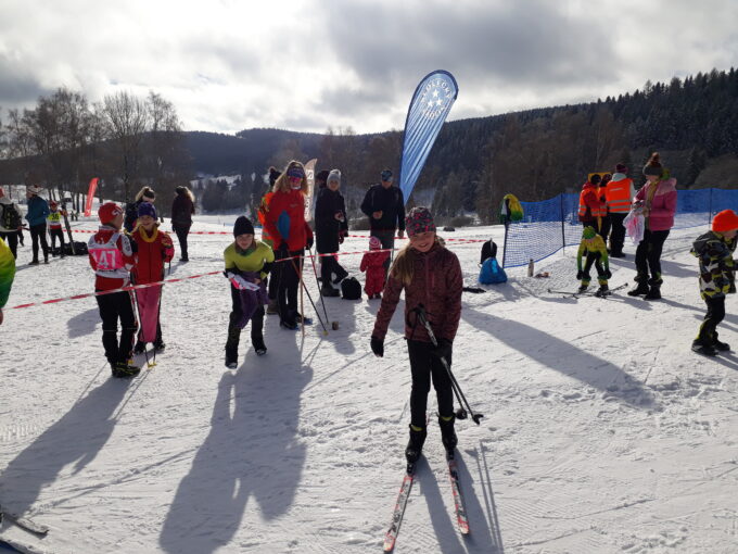 A naši závodníci byli skvělí. Mladší jeli klasikou, což byl trochu oříšek, moc to netrénujeme a mazání nebylo jednoduché. Náš servisman Luděk věnoval všem “závodním” lyžím spoustu času a energie večer (a noc) před závodem a lyže jely z kopce rychle. Do kopce, který tam byl jako blázen, to však bohužel všem docela smekalo a to se mi na místě už nepodařilo úplně napravita (ač jsem se snažila). Mločí holky a kluci si s tím však poradili a všichni dlouhý a těžký závod dojeli s úsměvem a některé pravé lyžaře i trochu potrápili. Maruška Benešová jela v kategorii nejmladší žákyně 1.600 m. Mladší žákyně Anička Nykodymová, Lada Prinzová a Kiarka Zabolotná měly stejně dlouhou trať jako mladší žáci Martin Kváč, Honzík Beneš a Filip Pilmajer a to 2.200 m.