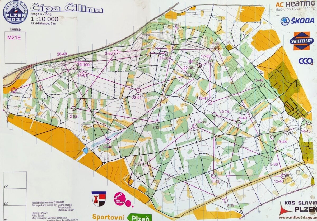 Long: A byl to teda pořádný long! Stavitel trati si nelámal hlavu směrnými časy – vítězové některých kategorií se pod dvě hodiny nedostali! Ondra si v M14 dojel pro velmi hezké 7. místo za 51 minut, Marek v M40A byl 24. časem 155 minut. Luděk v M50 trať na začátku lehce podcenil a tak radši postupně zpomaloval a nakonec se mu přes všechny ty kamenité a bahnité pasáže podařilo dostat do cíle v čase 169 minut a tím o 7 vteřin porazit aspoň jednoho soupeře. Uf! Svoji trénovanost se rozhodl vyzkoušet LOBák Vojta, který se s mírnou naivitou rozhodl poměřit se světovou špičkou v kategorii M21E (závod byl počítaný do světového rankingu). Trať měřila vzdušnou čarou 25 km a po všech různých cestách a cestičkách Vojta najel cca 35 km. Vítěz to zvládl za neuvěřitelných 114 minut. Čas Vojty 175 minut je trochu delší, ale dost soupeřů zůstalo ještě za ním: 51. místo z 61 závodníků je solidní.