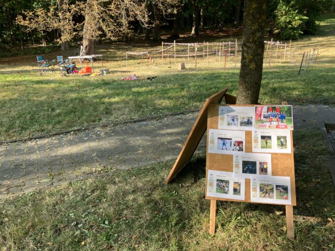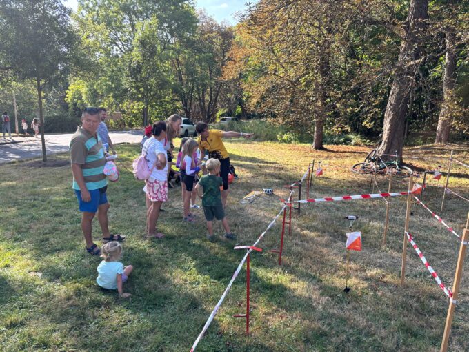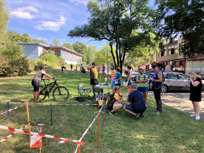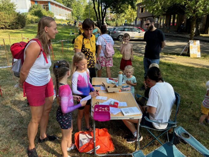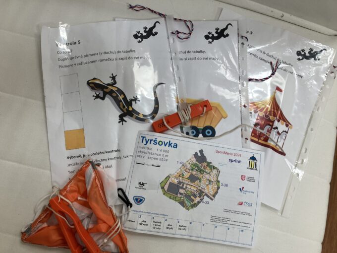 Orienťácká trať byla jedna úrovně HD10/12 na 5 kontrol. Bylo horko a na Tyršovce bylo spousta sportů k vyzkoušení, takže tuto trať prošlo trochu méně lidí, než jsme čekali. Trasu dokončilo 12 dětí (většinou s doprovodem rodičů či jiných příbuzných) a proběhlo si ji asi 5 Mloků. Čas se neměřil, na kontrolách byly kleště a drobné úkoly, v cíli lízátko.