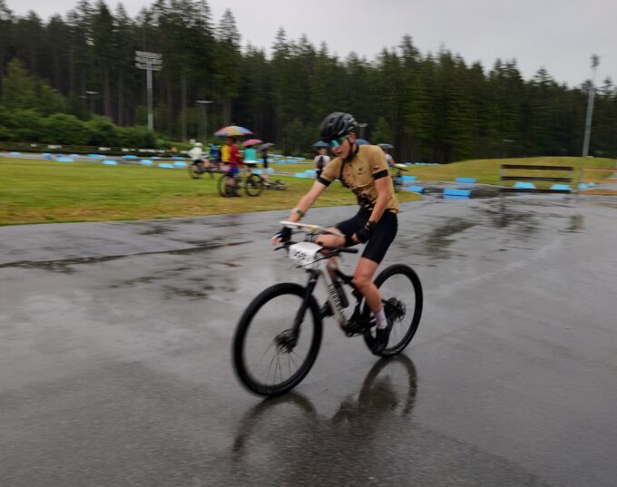 Komentář Ondry ke štafetě: Věděl jsem, že mám ztrátu asi 4–5 minut na Smržovku. Jejich třetího závodníka jsem vůbec neznal, ale věděl jsem, že není tak rychlý, takže jsem si věřil, že ho porazím. Začátek závodu byla „časovka“ na kopec a druhá polovina sjezd po trailech do arény. V jednom sjezdu kousek za polovinou tratě jsem Urbana předjel. Potom už jsem jel v klidu a na jistotu, protože mi bylo jasné, že Oťáka (třetí závodník Jičína) už nedojedu.